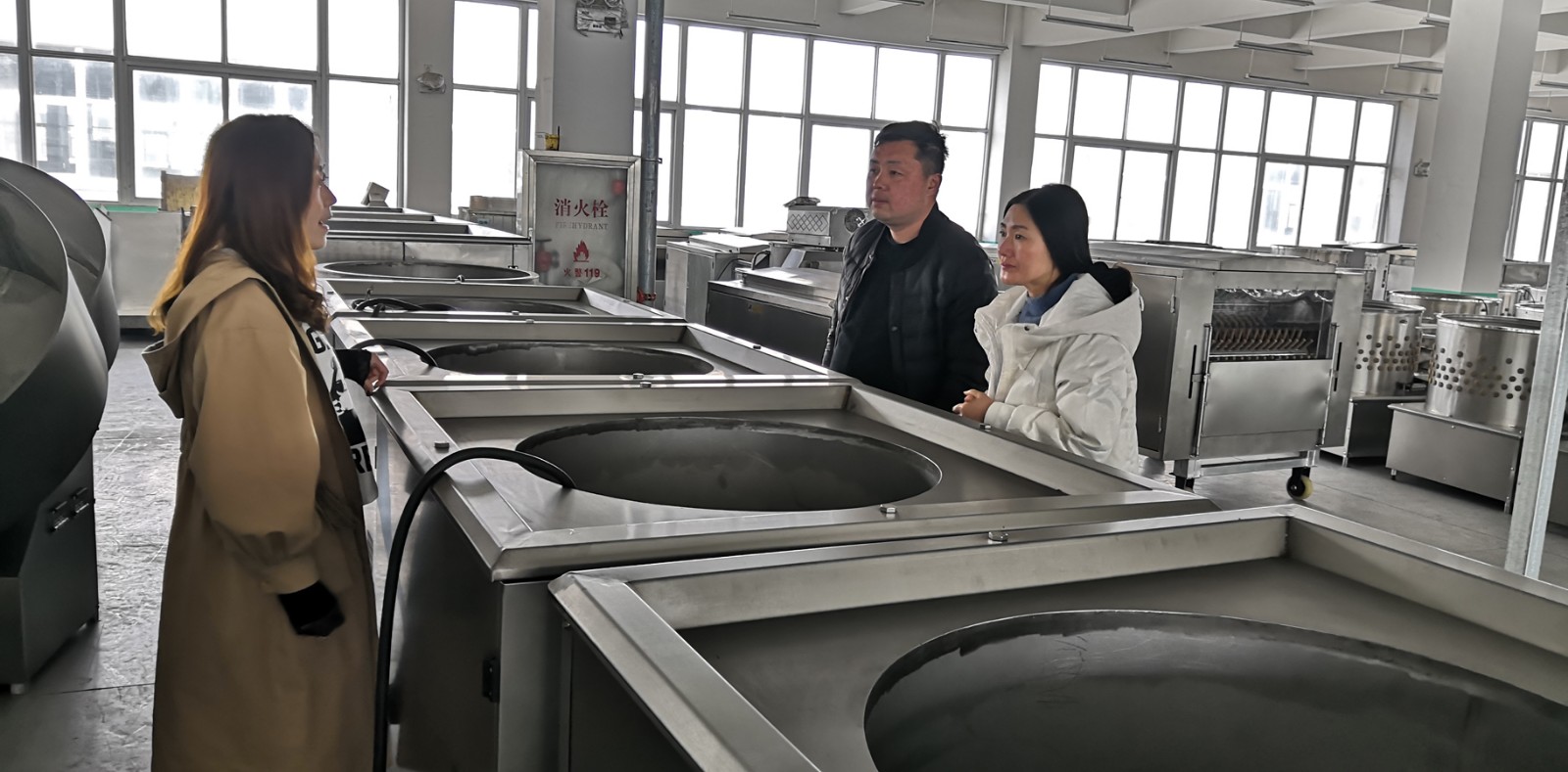 许昌客户耿老板一行两人,来到公司考察电磁炒货机、电磁煮锅等配套设备,做建厂前期准备!